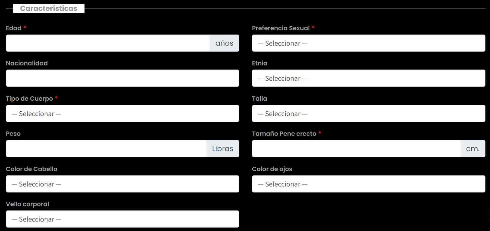 Ingresa las caracteristicas de ti para que las personas puedan buscarte de acuerdo a gustos y preferencias, algunas de ellas son obligatorias.