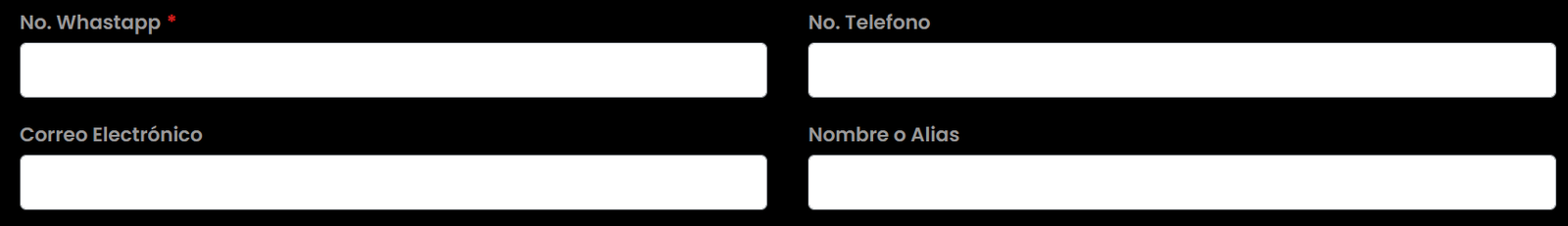 Introducir de manera obligaría el numero de Celular de Whatsapp, su numero fijo si lo tienes, el email, y como te gustaría que te llamaran.